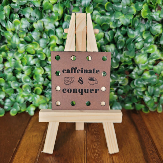 "Caffeinate & Conquer" Tag - Fold Over & No Sew