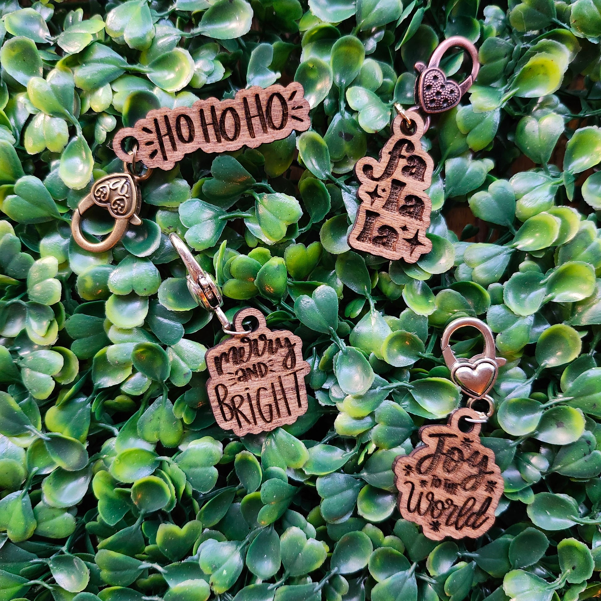 Expertly crafted for the holiday season, my Crafty Christmas Stitch Markers are a must-have for any knitting or crocheting project. Made from high-quality wood and engraved with festive designs, these set of 4 stitch markers will add a touch of charm and organization to your crafting. Large lobster claw hardware means these stitch markers will attach easily no matter what yarn you prefer!