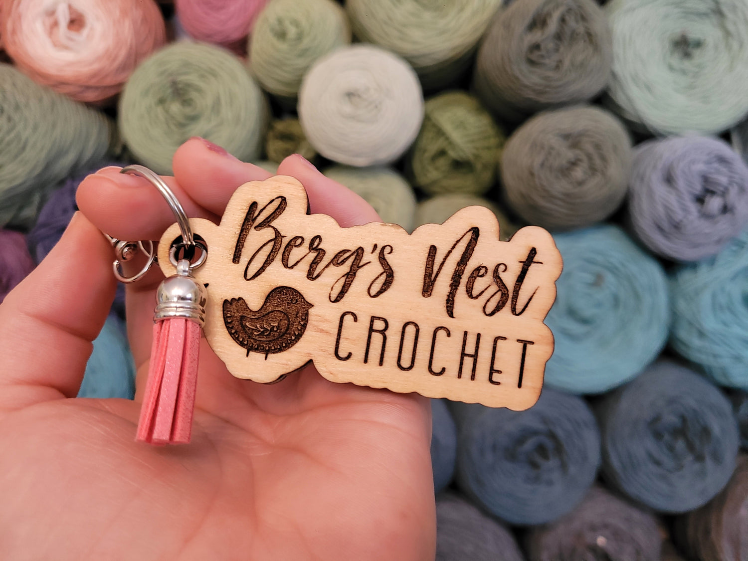 The Pickle Pals collection features playful pickle-shaped wooden buttons, pickle jar patches & themed tags, and pickle stitch markers for crocheters and knitters. Perfect for small businesses or unique gifts!